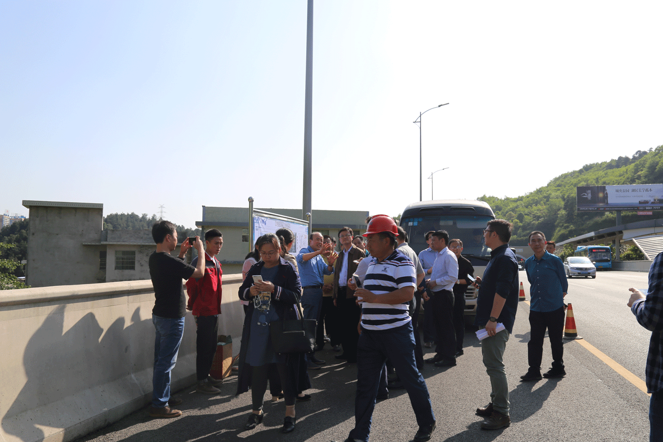 隨后來到楊柳井立交對我們的生態(tài)袋綠化工藝進(jìn)行了解。